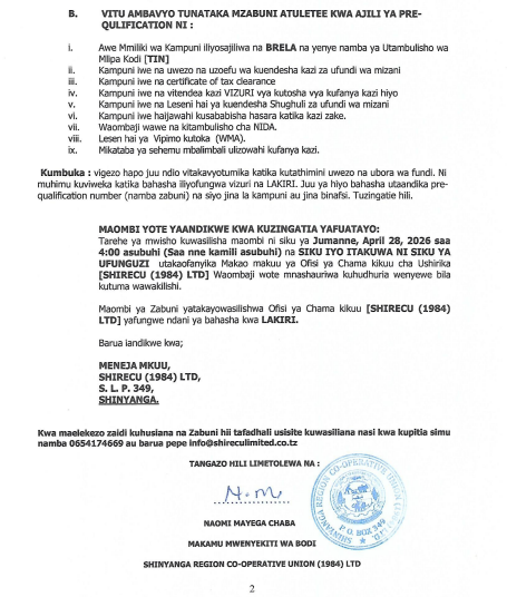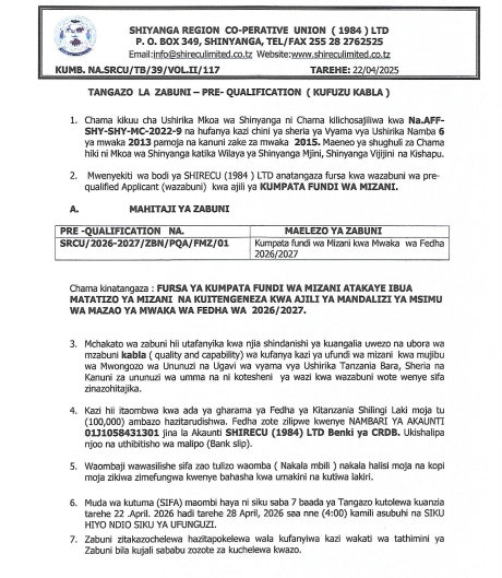 TANGAZO LA ZABUNI YA FUNDI WA MIZANI
